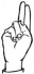 На ћирилици написано КАЋА ДУЊИЋ састоји се из 9 слова [?]. Исписано ћириличном једноручном азбуком за глувонеме: